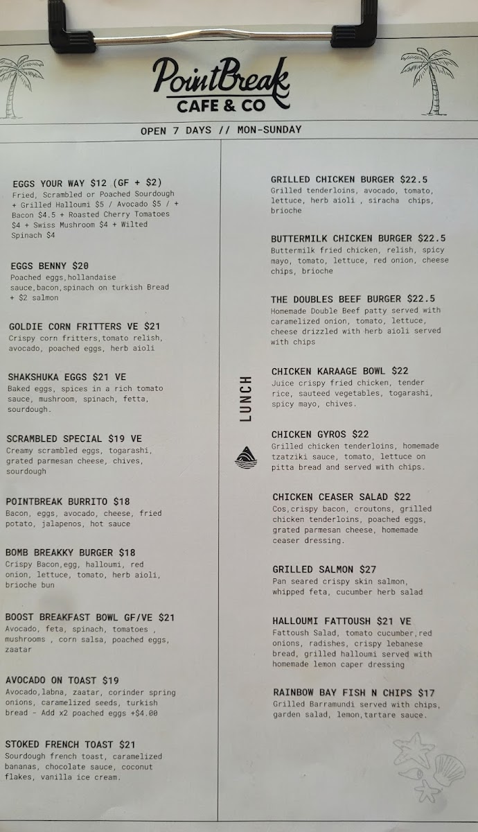 PointBreak Cafe & Co Menu